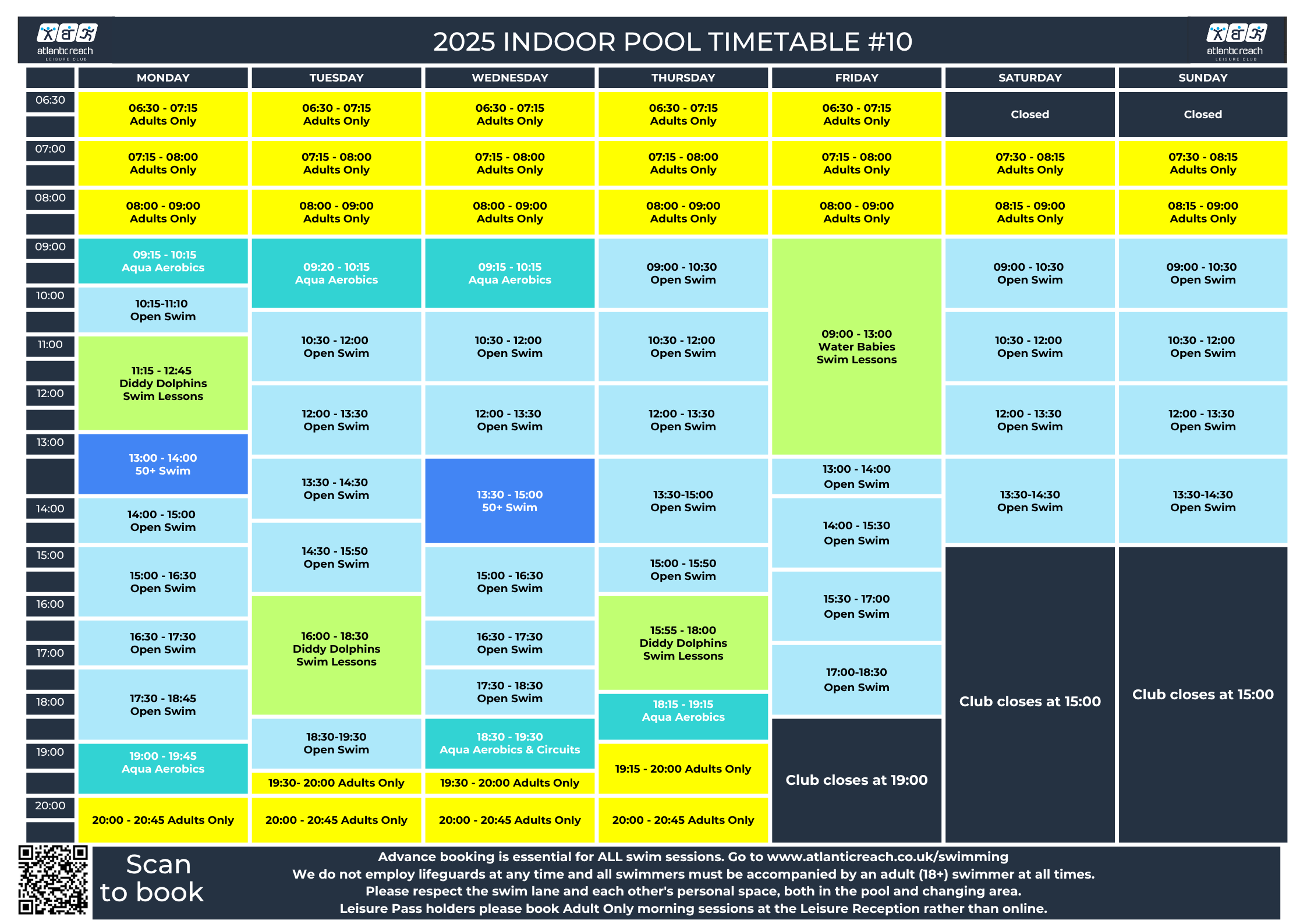 Please visit our swimming page to book your swimming session.