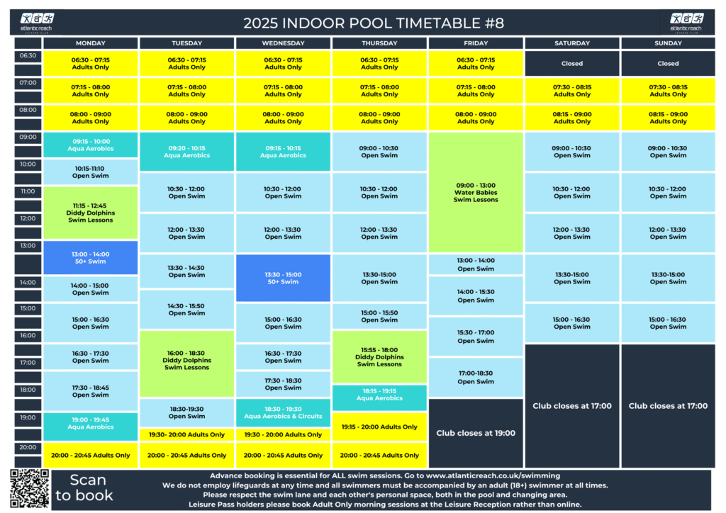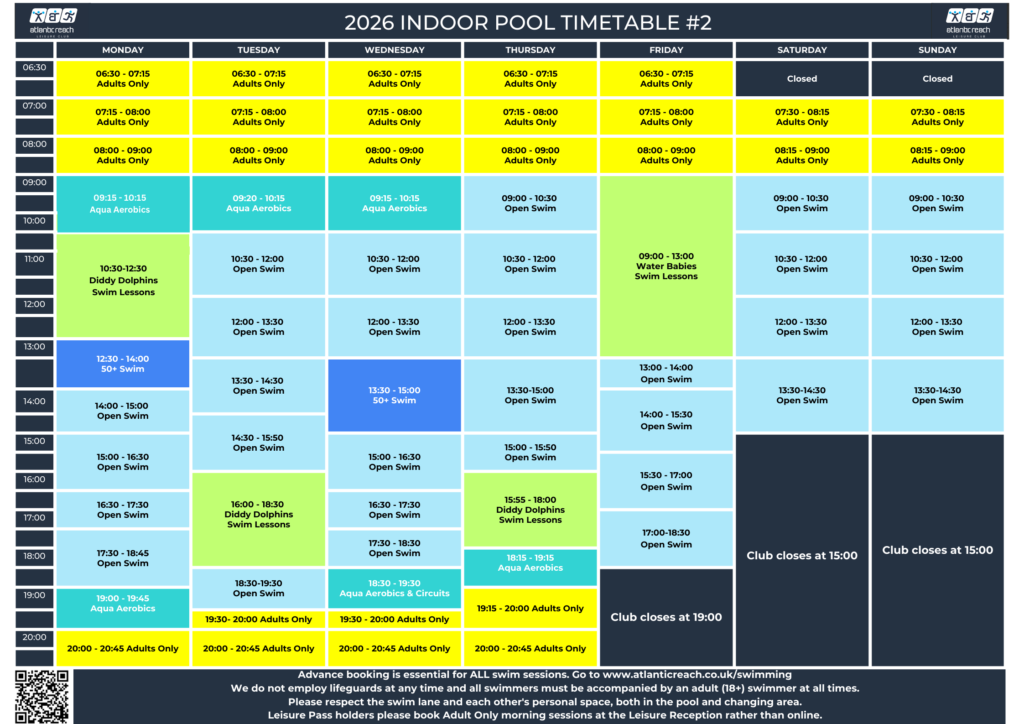 Our pools are not normally lifeguarded. Follow these rules for keeping safe when using the swimming pools www.atlanticreach.co.uk/swim-safe.