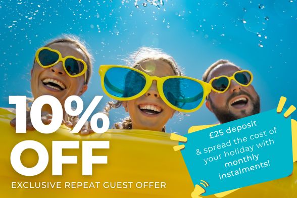 This offer is available for new bookings in all accommodation types, all year round, for three nights or more. Cannot be combined with any other offer or promotion. Expires after 12 months. Our usual booking terms and conditions apply.