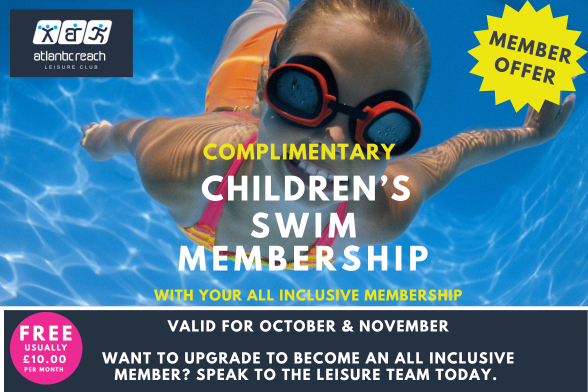 We’re offering something special for our members and we wanted you to be one of the first to know. Upgrade to All Inclusive membership and you get one Child Swim Membership completely FREE in October and November.