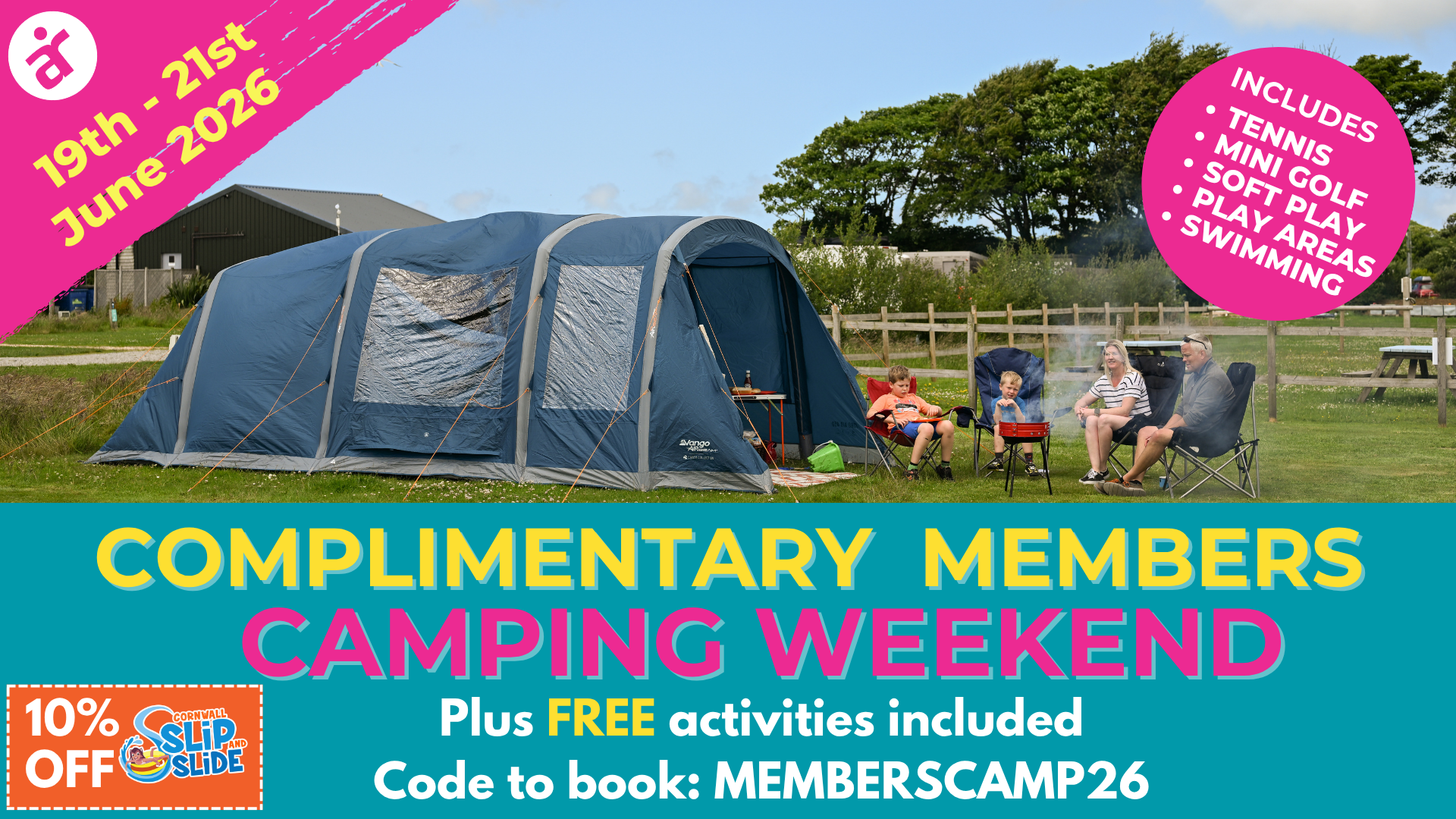 One pitch per member | Offer valid for Leisure Club Members only and their immediate family |This offer is not for Locals Card Holders | Up to 2 well-behaved dogs welcome | Bookings must be made using your member name (we’ll be checking!) | Use code: MEMBERSCAMP26 when booking online | Offer valid for Friday 19th to Sunday 21st June only | Your booking will be for a pitch on Crantock Field (please note you may be pitched on another camping field on arrival)
